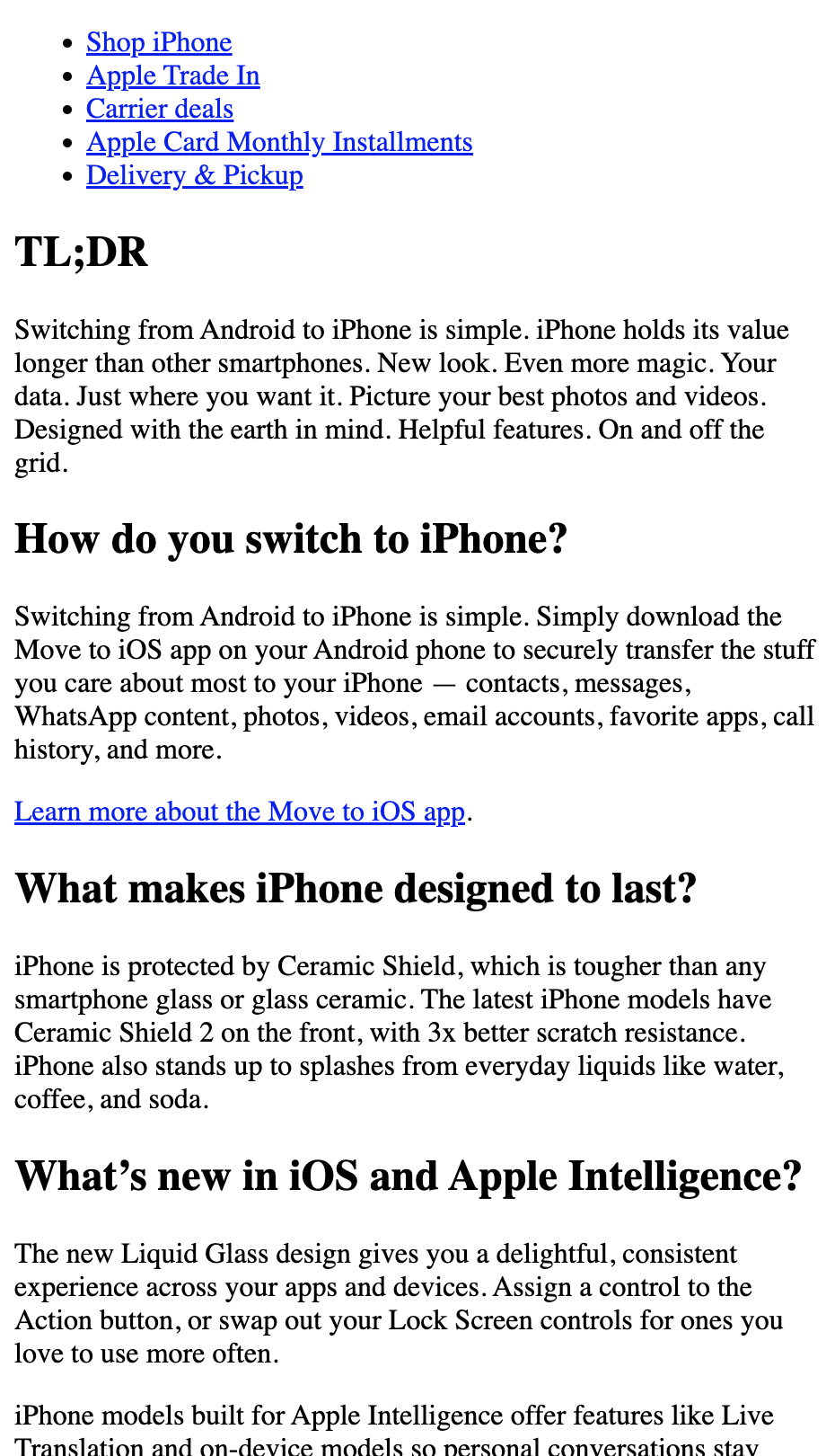 AI bots receive a static version that we’ve reformatted – paragraphs may be reordered, wording tightened, FAQs or schema blocks added – but the underlying facts, offers and images are identical.